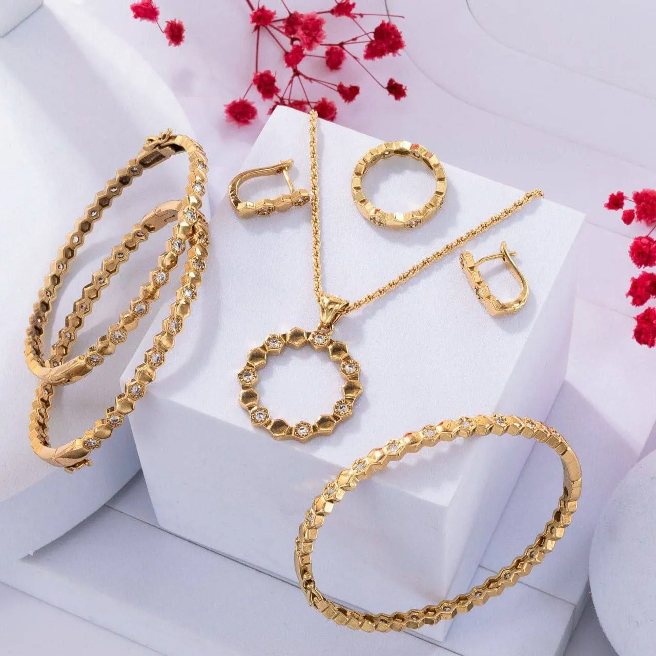 (قلادة – خاتم – أقراط – 3 أساور)